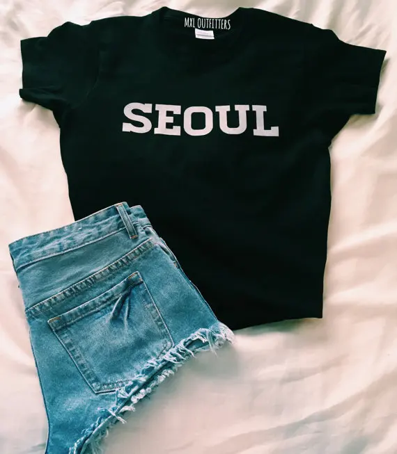 OKOUFEN K-pop Seoul T-shirt New Fashion High Quality Tumblr Women Fashion Clothing Letter Printed T Shirts Unisex Graphic Tees