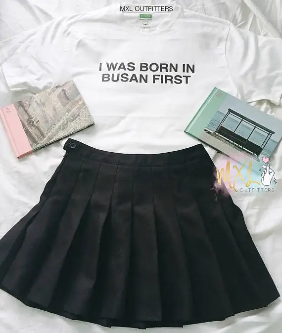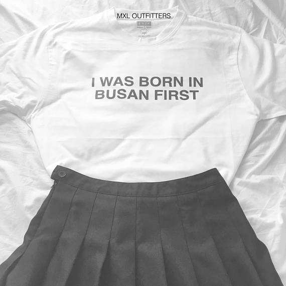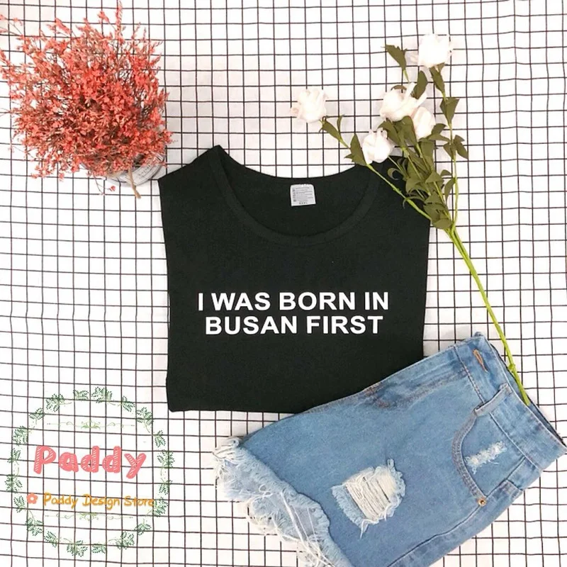 OKOUFEN korea style streetwear KPOP fashion unisex shirt I was born in Busan first T-Shirt print women mens tops tees hipster