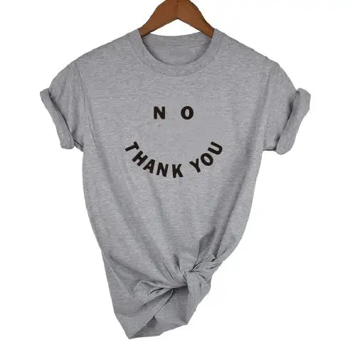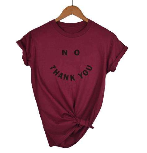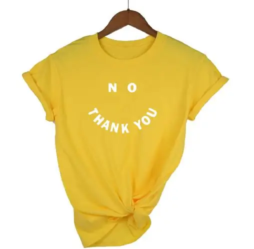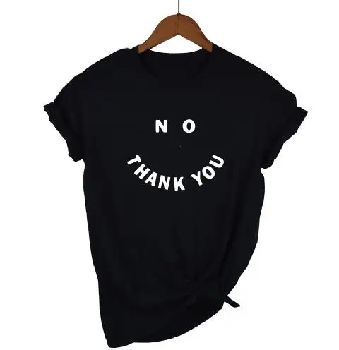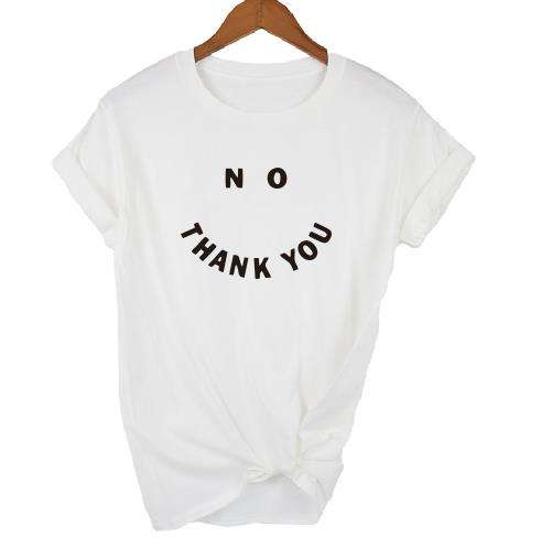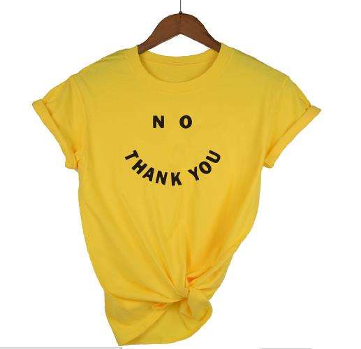 OKOUFEN No THANK YOU T-shirt Hipster For Ladies Letter Printed Top Tee Fashion Short Sleeve Female Femme T Shirt Drop Ship