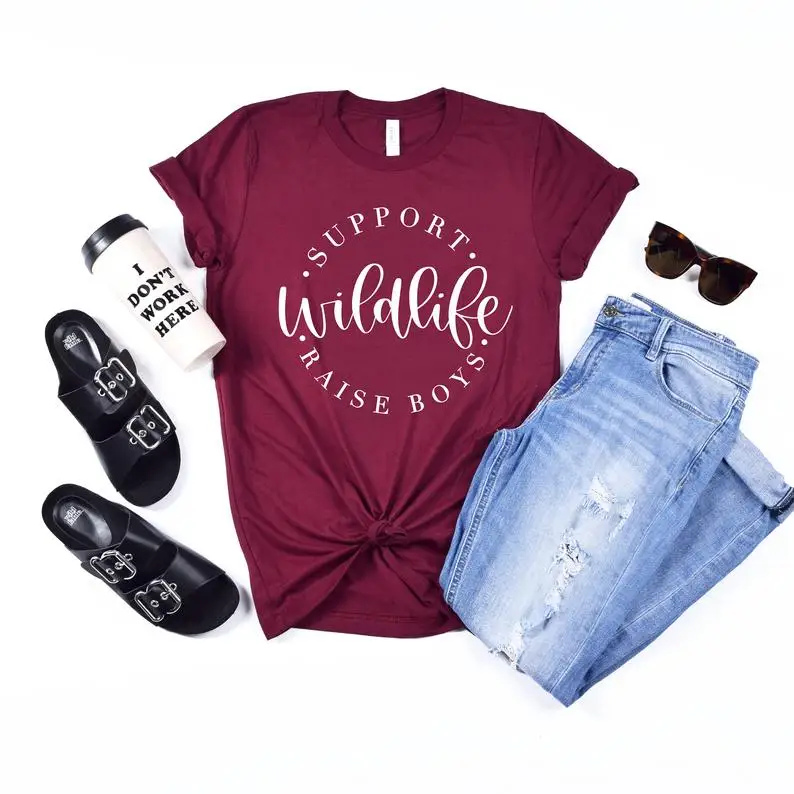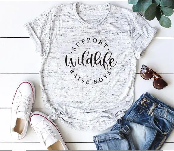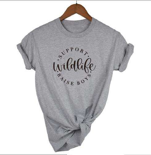 OKOUFEN Support Wildlife Raise Boy T-shirt Casual Women Top Short Sleeve Letter Printed Harajuku Female Tops Tumblr Drop Ship