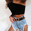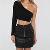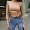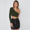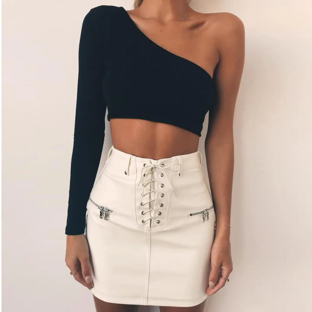 One Shoulder Slope Neckline T Shirt Sexy Solid Long Sleeve Women’s Tshirt White Black Crop Top T-shirt 2019 New Fashion