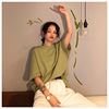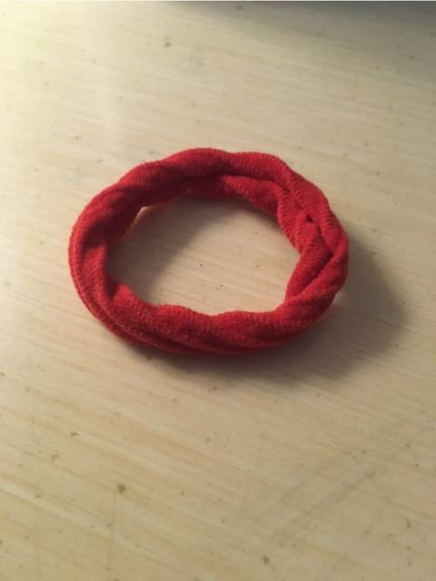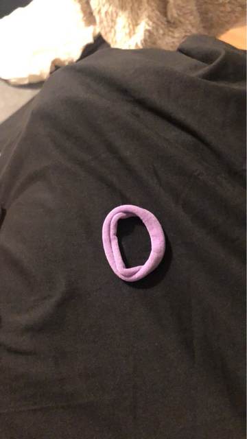 it arrived really fast. the color is nice although I was expecting a cotton T-shirt and mine was a little more stretchy. came with a cute hair tie :)