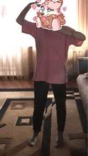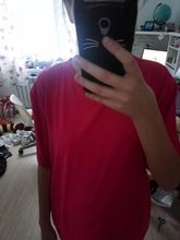 T-shirt came as in the picture. Slightly smelled, but immediately lost the smell after the first wash. Did not sit down. Comfortable, the fabric is not dense, light, but also does not shine through. Long and wide, cut under the length that I need. In general, everything suits. Thank you!