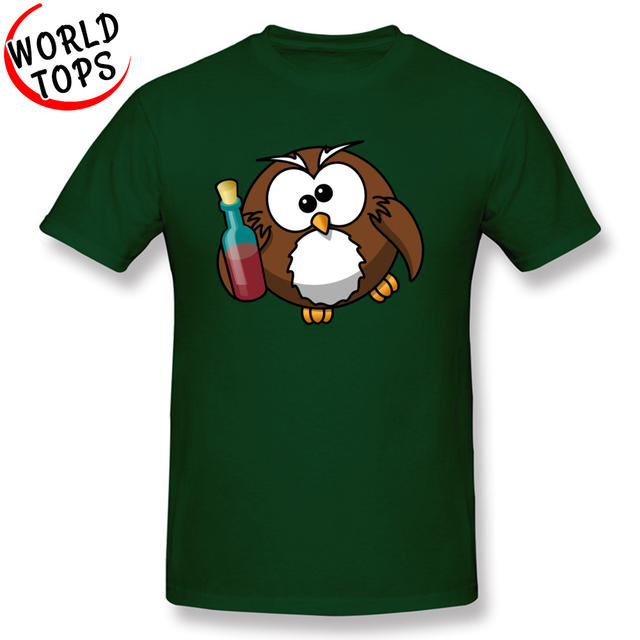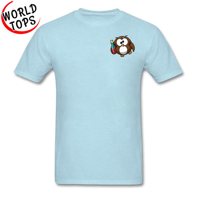 Owl Alcohol Normal Round Neck Tshirt Summer Fall Tees Short Sleeve Slim Fit 100% Cotton Europe Sweatshirts Street T Shirt
