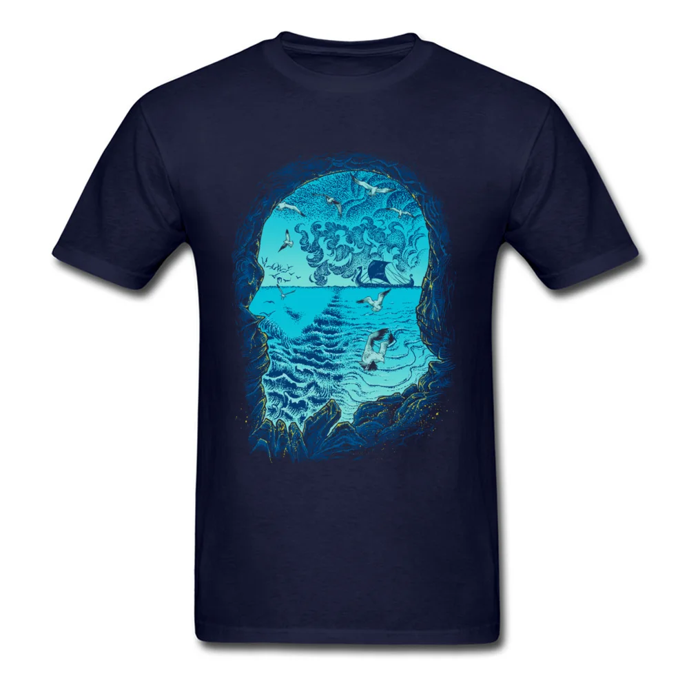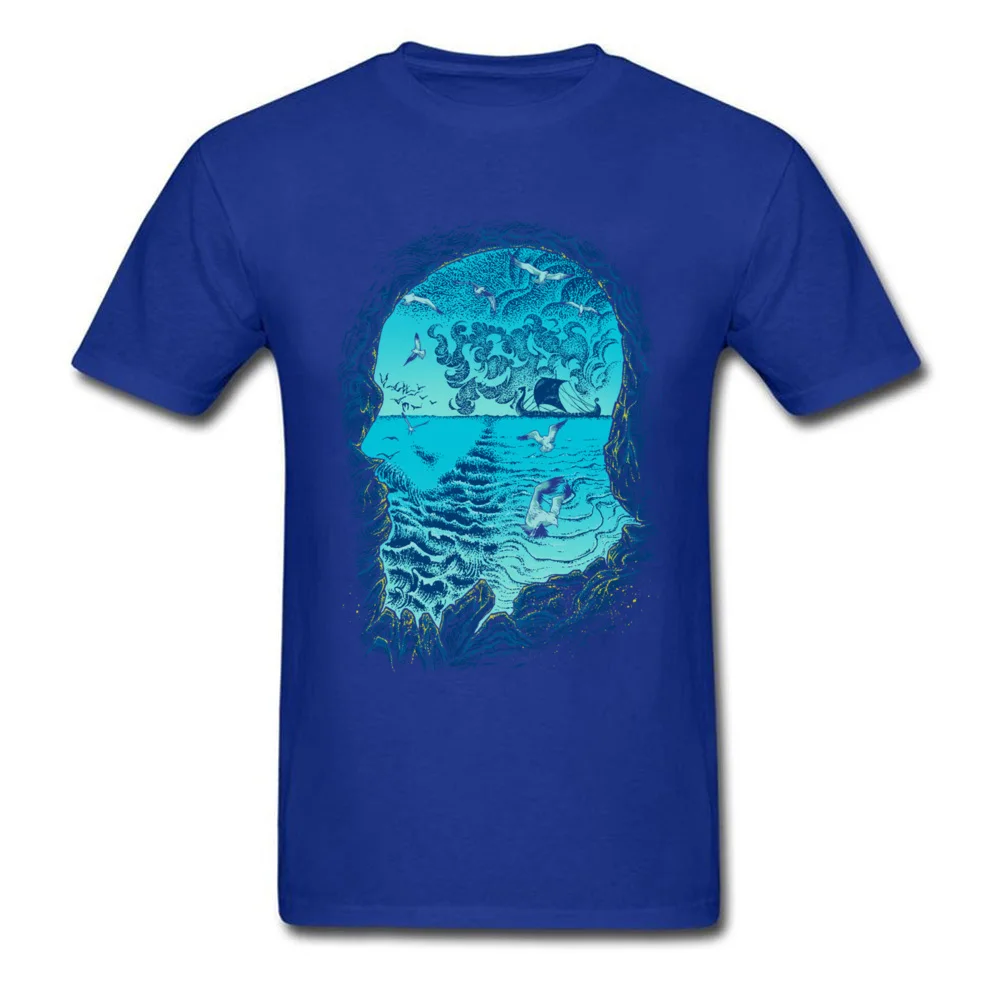 Product Name: Pacific Ocean War Novelty 3D T Shirts Men Funny Blue Outline Face Tshirt Male Tees Plus Size 3XL Unique Design Mens T-Shirt