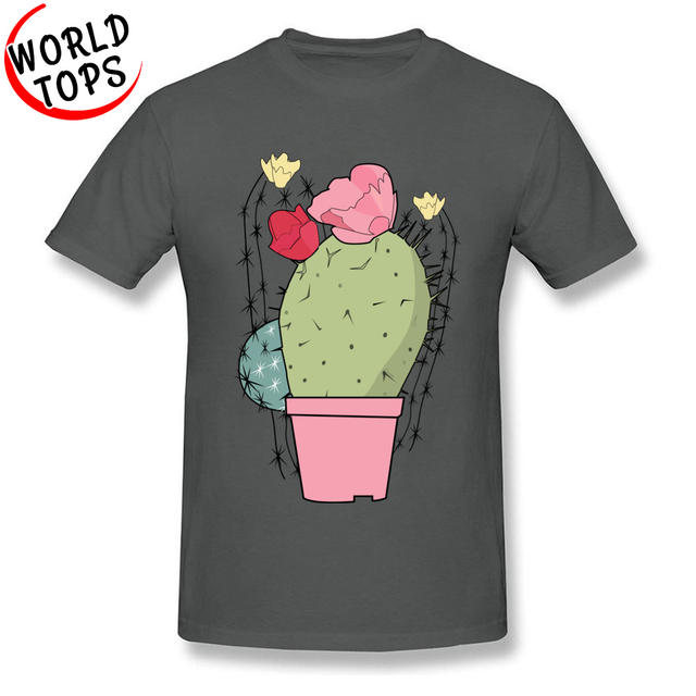 Product Name: Pastel Colors Cactus Bonsai Art Image T Shirt Summer/Autumn 100% Cotton Green Plant T Shirts Custom Shirts 2018 New