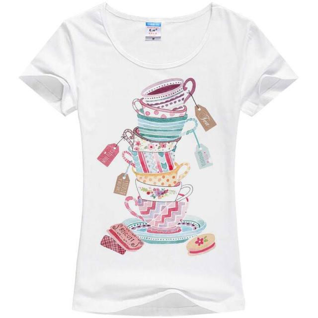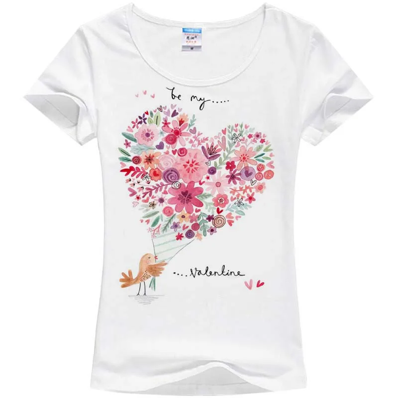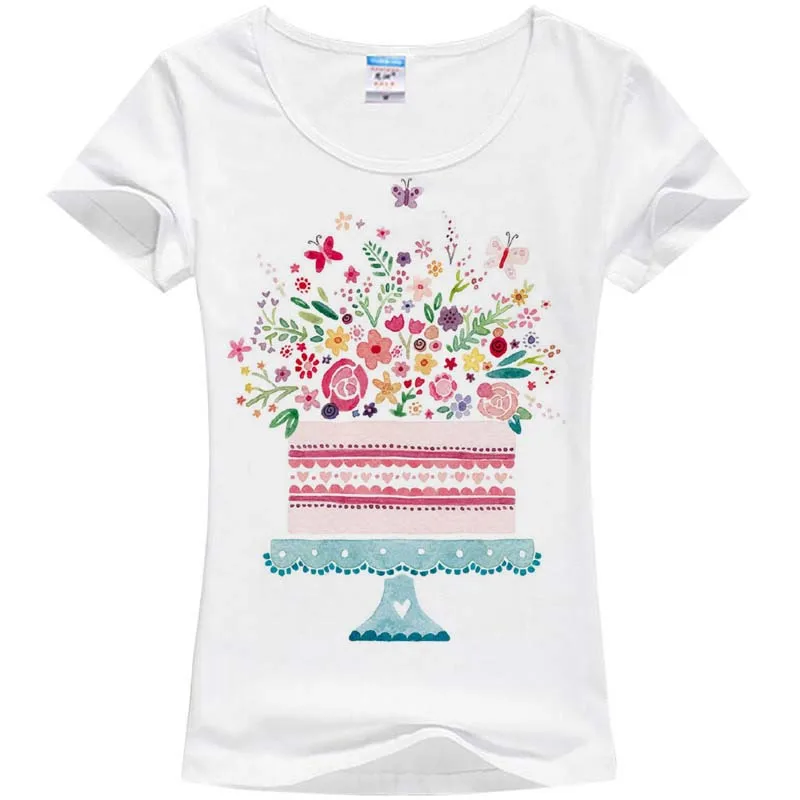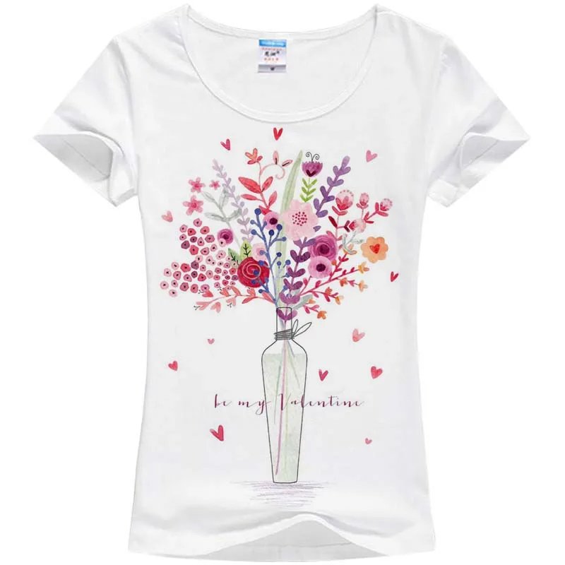 Personality vase flower print women T-shirt summer women’s small fresh round neck T-shirt factory outlets B-6#