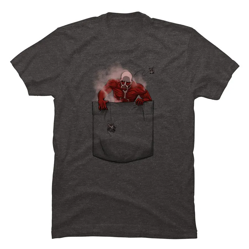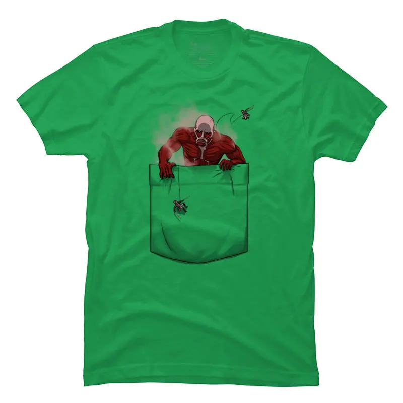 Pocket Titanic Tshirt Attack On Titan Japanese Comic Tops & Tees for Men WINGS OF FREEDOM Harajuku Camiseta Tee Shirt Cotton