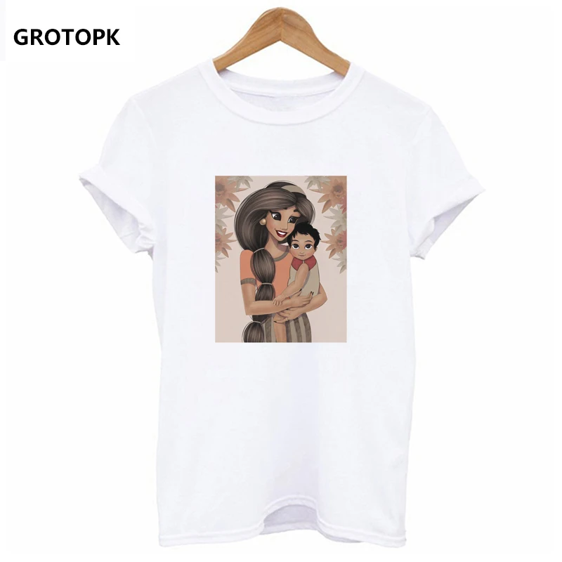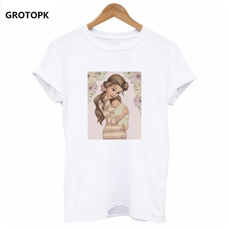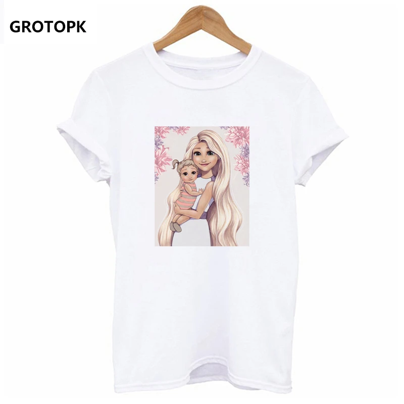 PRINCESS MOM and Baby Kawaii T-shirts for Women Aesthetic Harajuku Top Summer 2019 Vintage White T-shirt Mother’s Day Super Mama