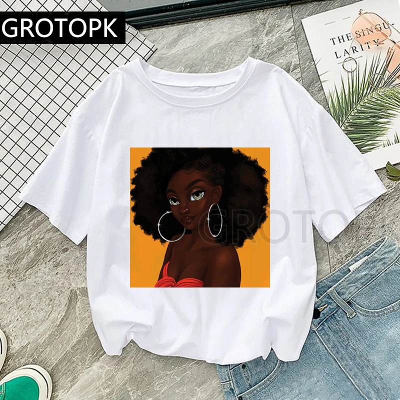 Print Casual Harajuku Women Black Girl Nubian T-Shirt Summer Short Sleeve Casual Round Neck Clothes Top Mode Femme