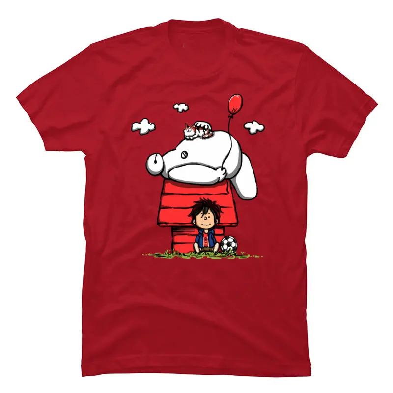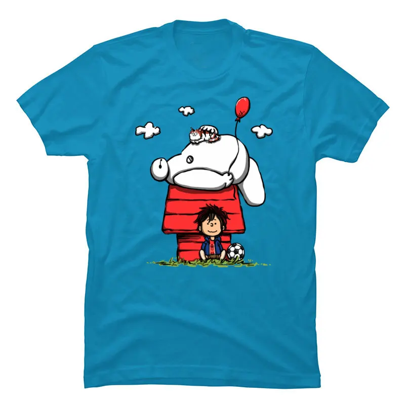 Printed T Shirt Peanut Big Hero Robot Funny Designers Short Sleeve 100% Cotton O-Neck Student Tshirts Christmas Party Tees