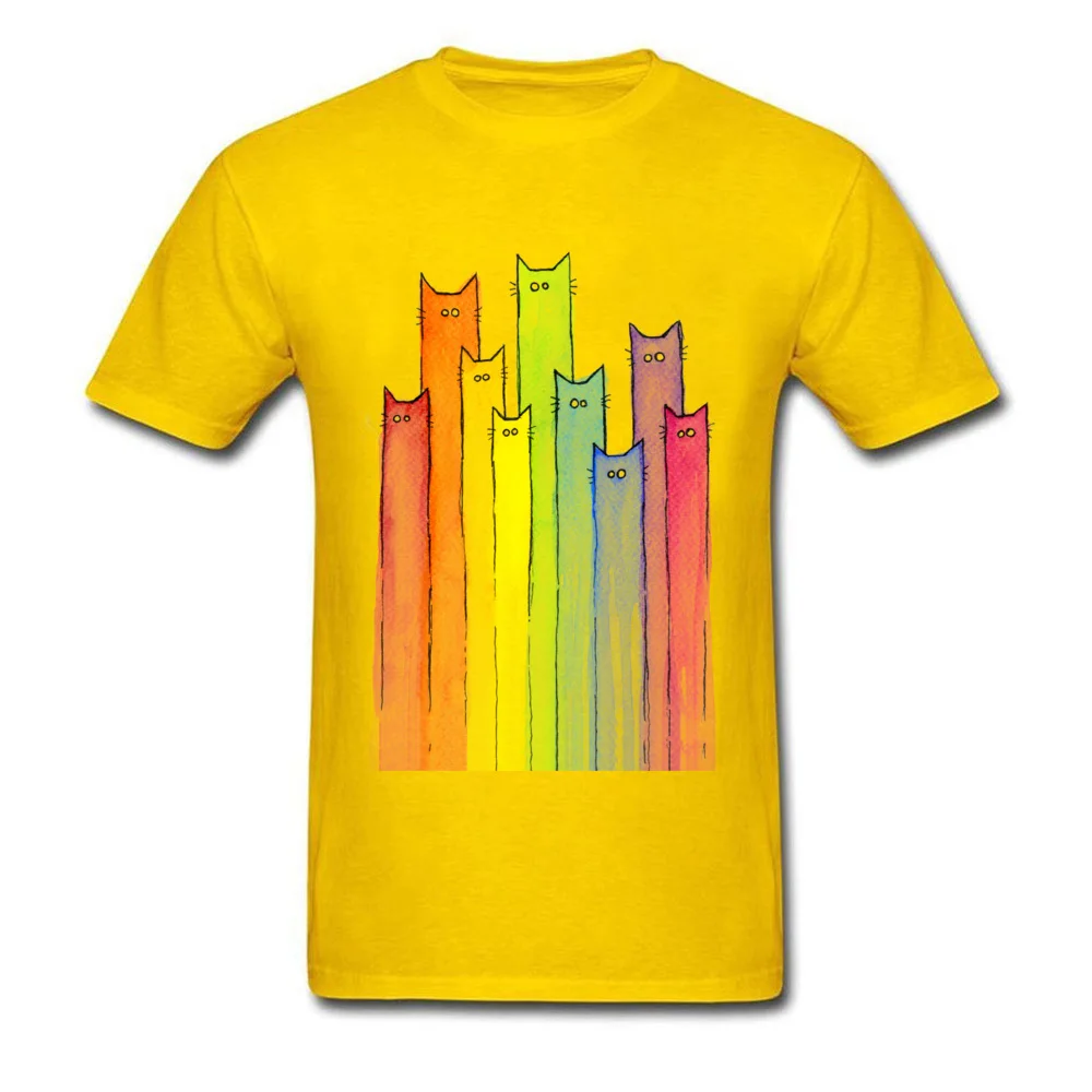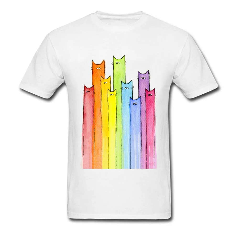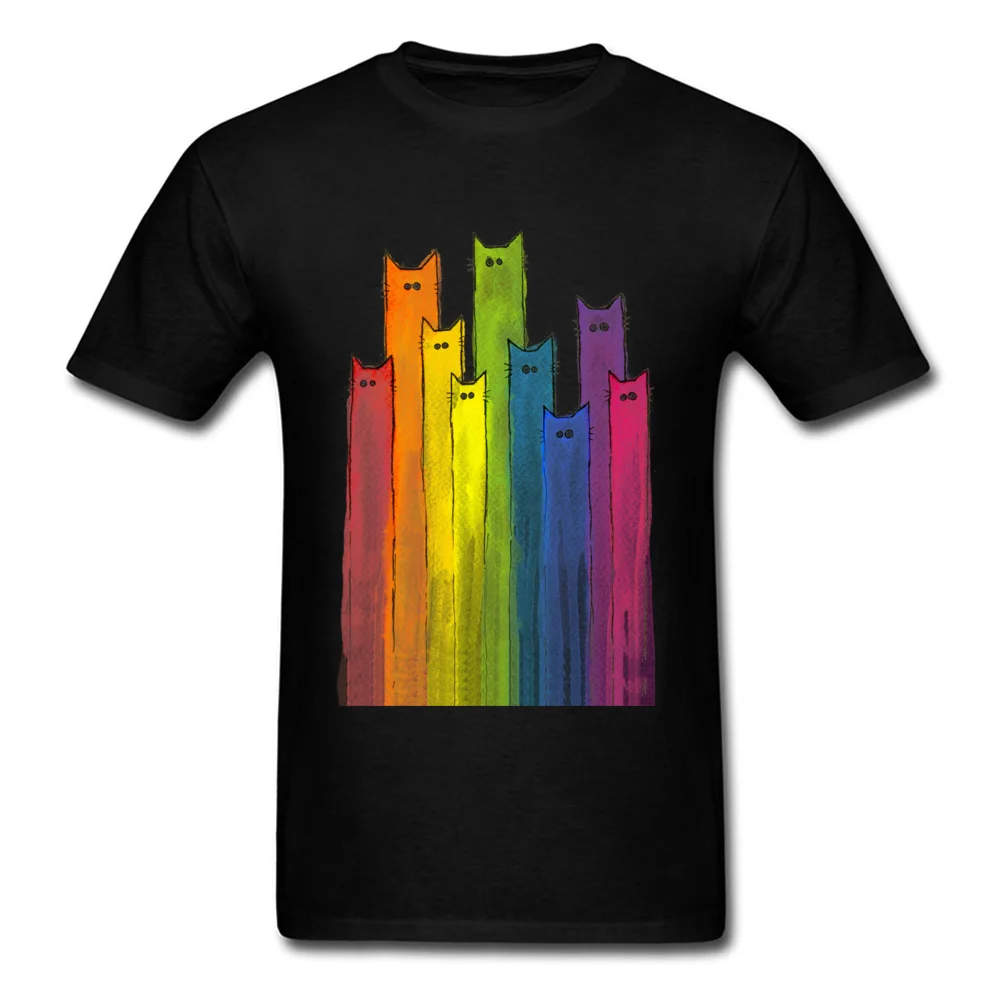 Rainbow of Cats Young 2017 Crazy Tops Shirts O Neck Thanksgiving Day All Cotton T-Shirt Casual Short Sleeve Clothing Shirt