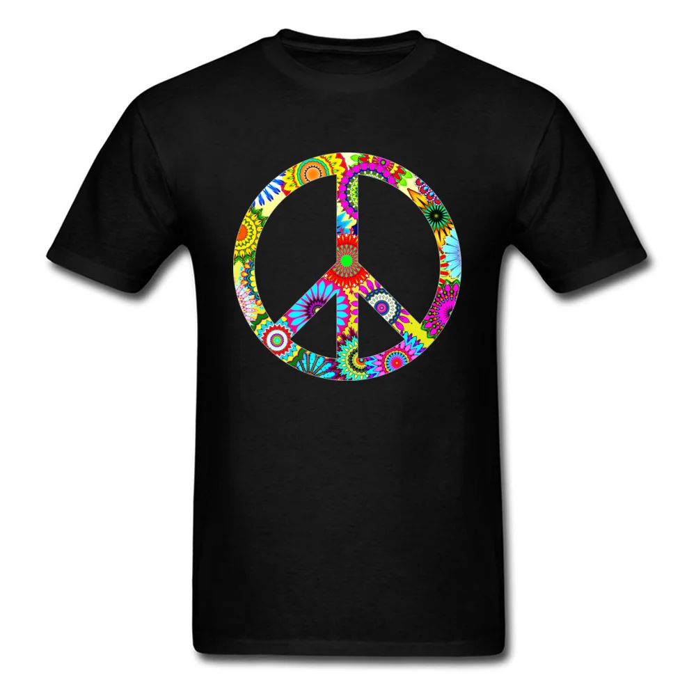 Product Name: Retro Flowers Peace Sign Round Neck T Shirts Summer/Autumn 3D Printed Tees Customized Fashionable 100% Cotton T Shirt Men