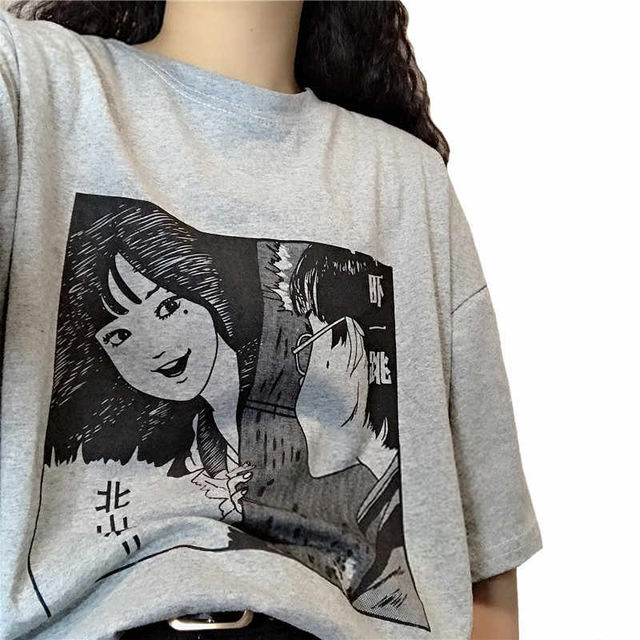 Retro Japan Fujiang Horror Comics cartoon anime print casual Tops tees Summer Harajuku casual short-sleeve O-neck women T-shirt