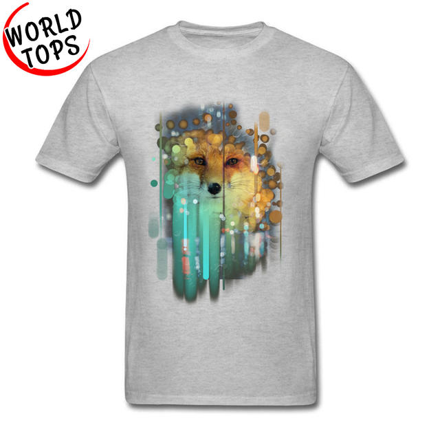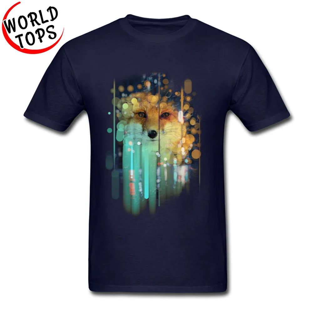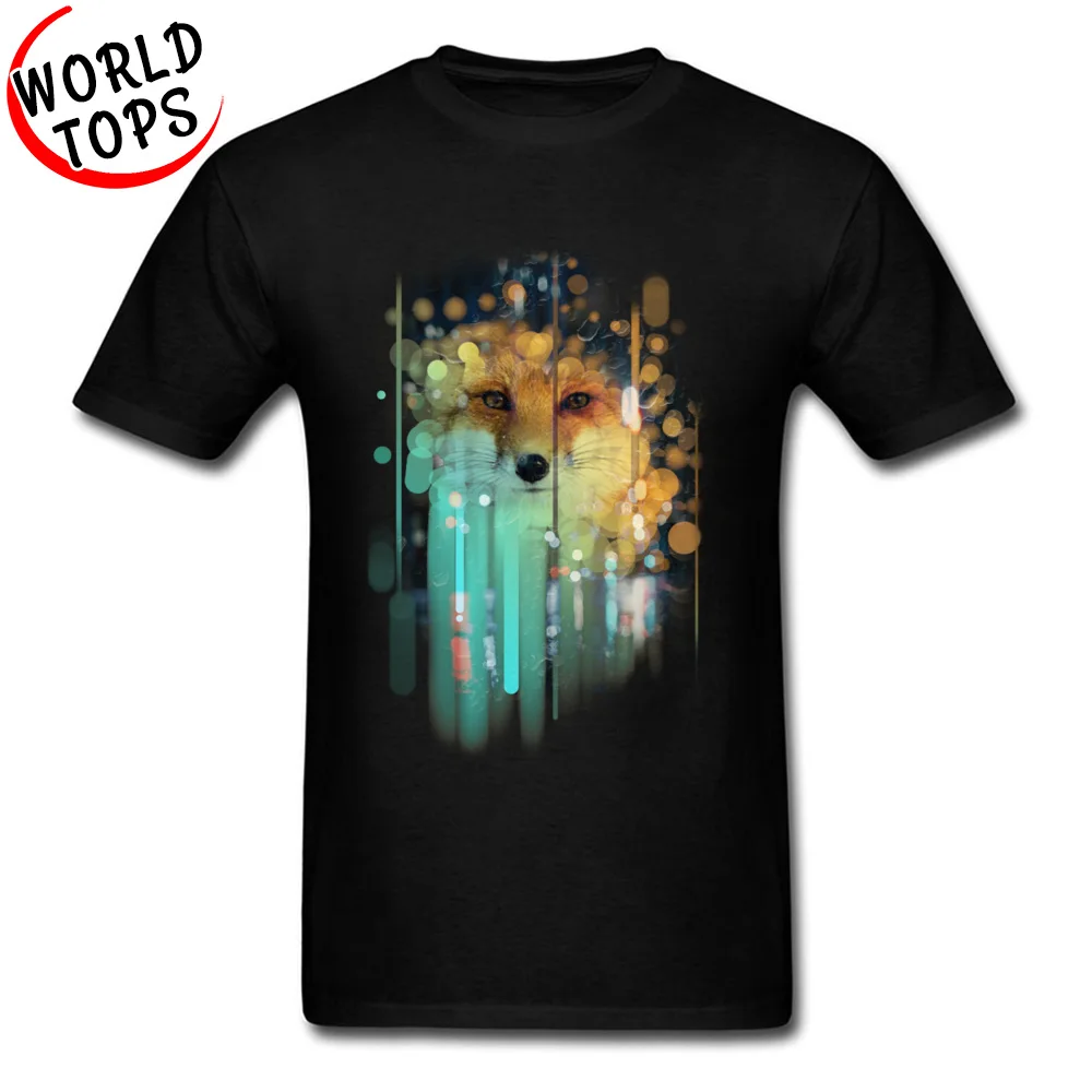 Product Name: 2018 New Coming Men Tshirts Rainy City Dimish Light Fox Walk Printed On Tops Shirts Natural Cotton Crew Neck Tees Summer Autumn