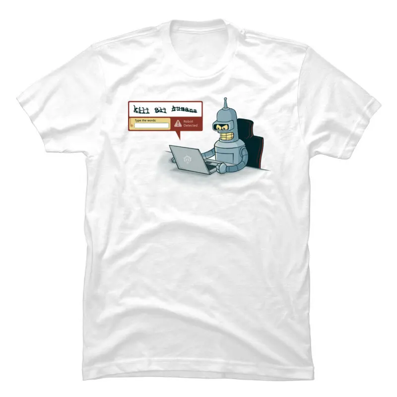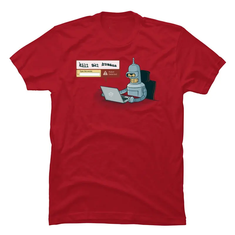 Robot Computer Tshirt Unique Short Sleeve Tops Shirt Funny Cartoon Picture T Shirt 100% Cotton Man T-Shirt 2019 Newest
