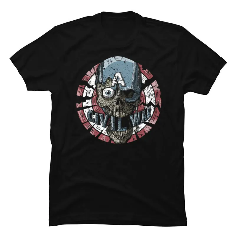 Rogers Civil War Captain American Mens T-Shirt Printing Skull Geek Movie Tshirt All Cotton Black 3D T Shirt Personalized T Shirt