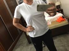 The quality is super, took with the coupon of aliexpress, 2 t-shirts cost about 220 uah ..)) on its xs/s took the size of m and here is a problem, the pink village is just perfect (not obtyag, but according to the figure) white too size m, but wider and sits a little differently, i will not say that bad, but more free (See 4 more in width) but taking into account the price, the speed of delivery (about 2.5 weeks to ukraine lugansk region) and good quality, can recommend to buy, t-shirts are good, by the way, the pink color is very delicate, muted pink