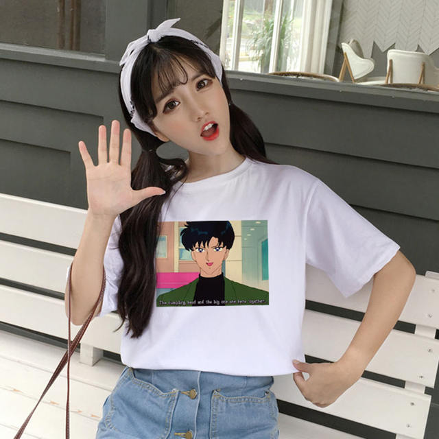 Sailor Moon Cartoon print Shirt cute interesting Kawaii loose New Fun Women Fashion Harajuku Ground guard print casual tops tee