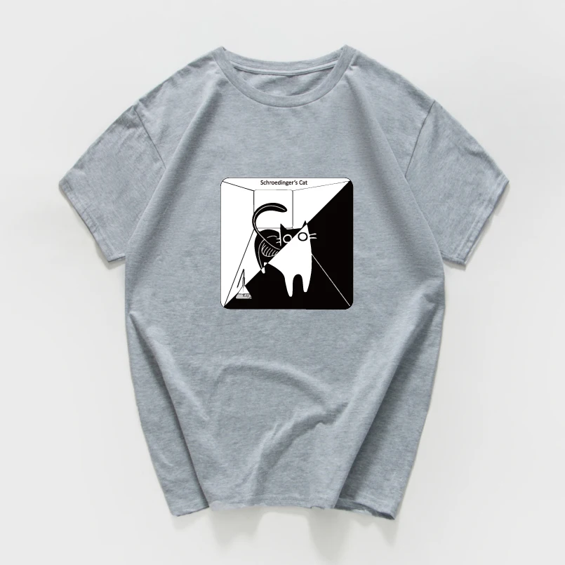 schrodingers cat physiques T shirt men humor Tee shirt homme Graphic loose streetwear hip hop Novelty Sarcastic cool Tshirt men