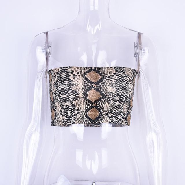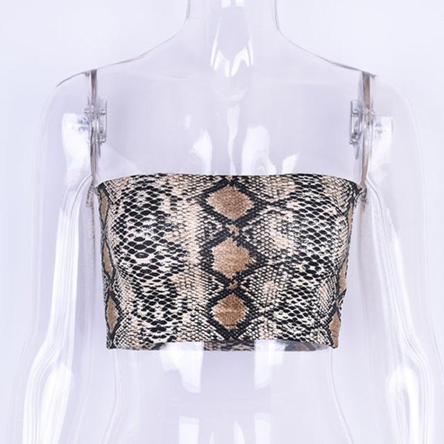 Sexy Crop Top Women Strapless Boob Tube Ladies Stretch Bandeau Bra Crop Tops 2018 Fashion Party Shirt Snake skin Printed