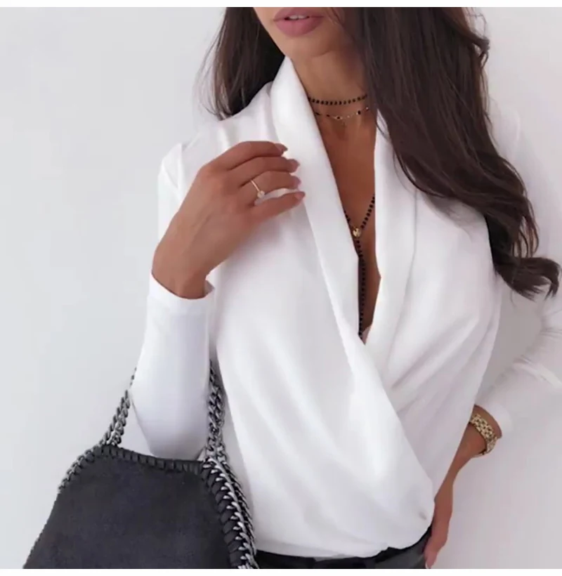 Sexy T-shirt Women Autumn Long Sleeve Tops Sexy Deep V Neck Vegan Clothes Elegant 2019 New Vogue Street White Tee Shirt Feminina
