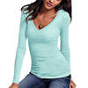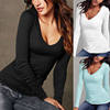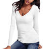Sexy Women Long Sleeve T-shirt V-neck Slim Fit Warm Autumn Spring Basic T-shirts Tops TY53