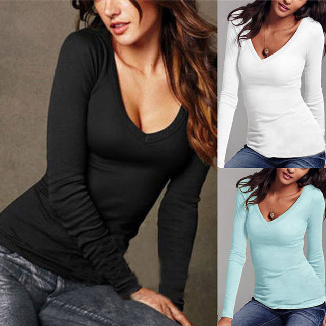 Clothes Type: Sexy Women Long Sleeve T-shirt V-neck Slim Fit Warm Autumn Spring Basic T-shirts Tops