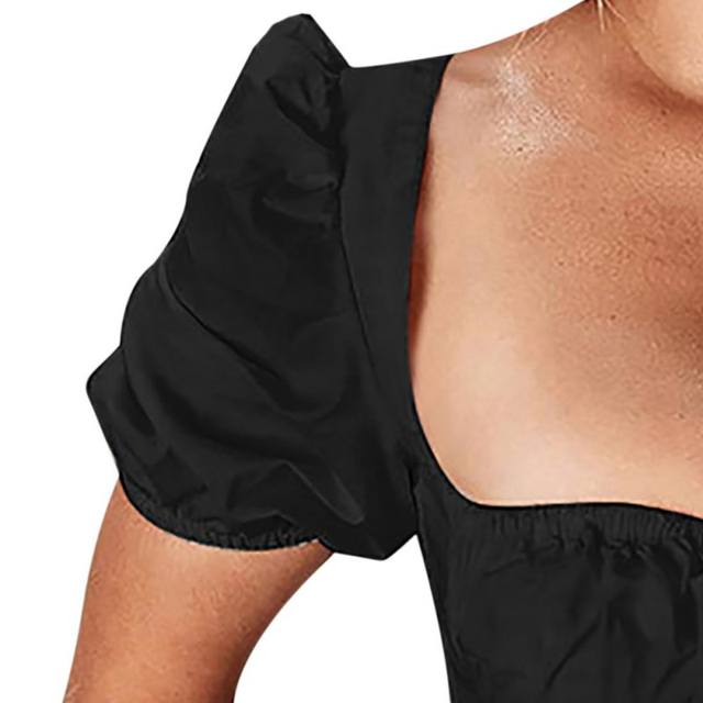 Features:Low collar/exposed umbilical/sexy slim/folds