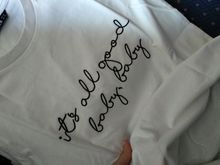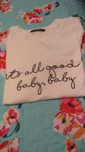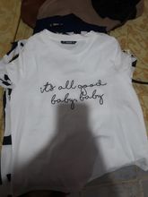It took a week to arrive, the T-shirt is cotton, the letters are well sewn, it's a Xs that fits. What it looks like in the image