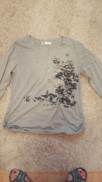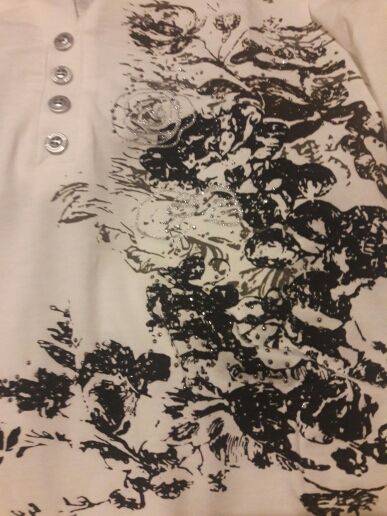 Delivery on time. The blouse is cute with sparkles. Corresponds to the description. On the russian 46 size took xl, everything went well. Thanks to the store.