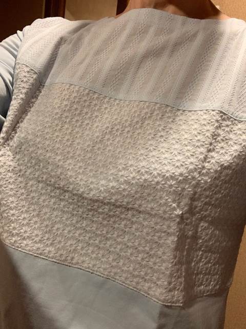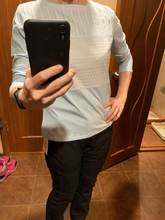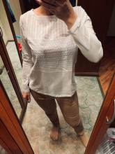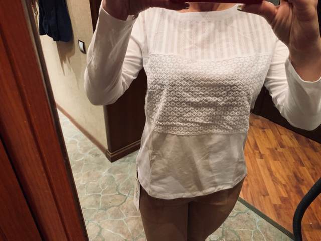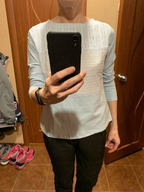 Good, quality blouse, for the spring, cool summer. Sewn neatly. The size for me is a bit too big (94/75/94, height 175), the sleeves are short, but for me this is an ordinary story (the hands are long). To the body is very pleasant. I think that the price is too high, but I'm not disappointed, I will definitely wear it. Five.
