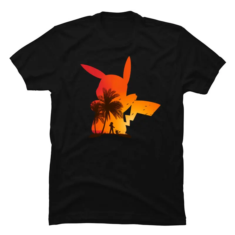 SILHOUETTE Pikatchu Funny T-Shirts Sunset Pokemon Darth Vader Jedi Bros Print Men’s Tee Shirt Star Wars Design New Tshirt Boy