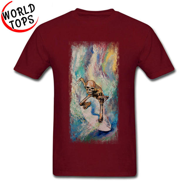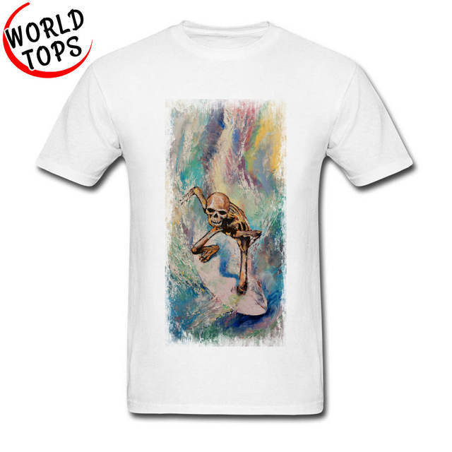 Skull Surfer Extreme Skater Skateboards Painting Tshirts Cool Men’s Amazing T Shirt Summer Popular Holiday T-Shirts Wave Beach