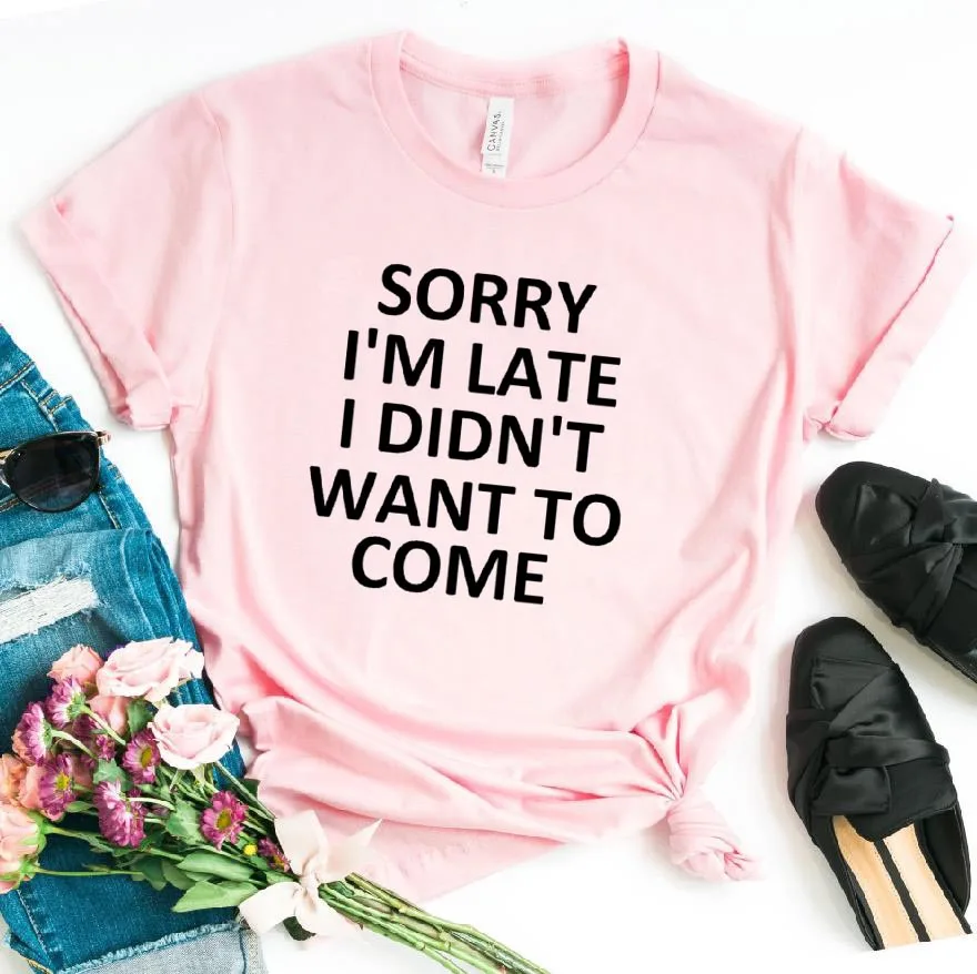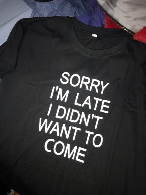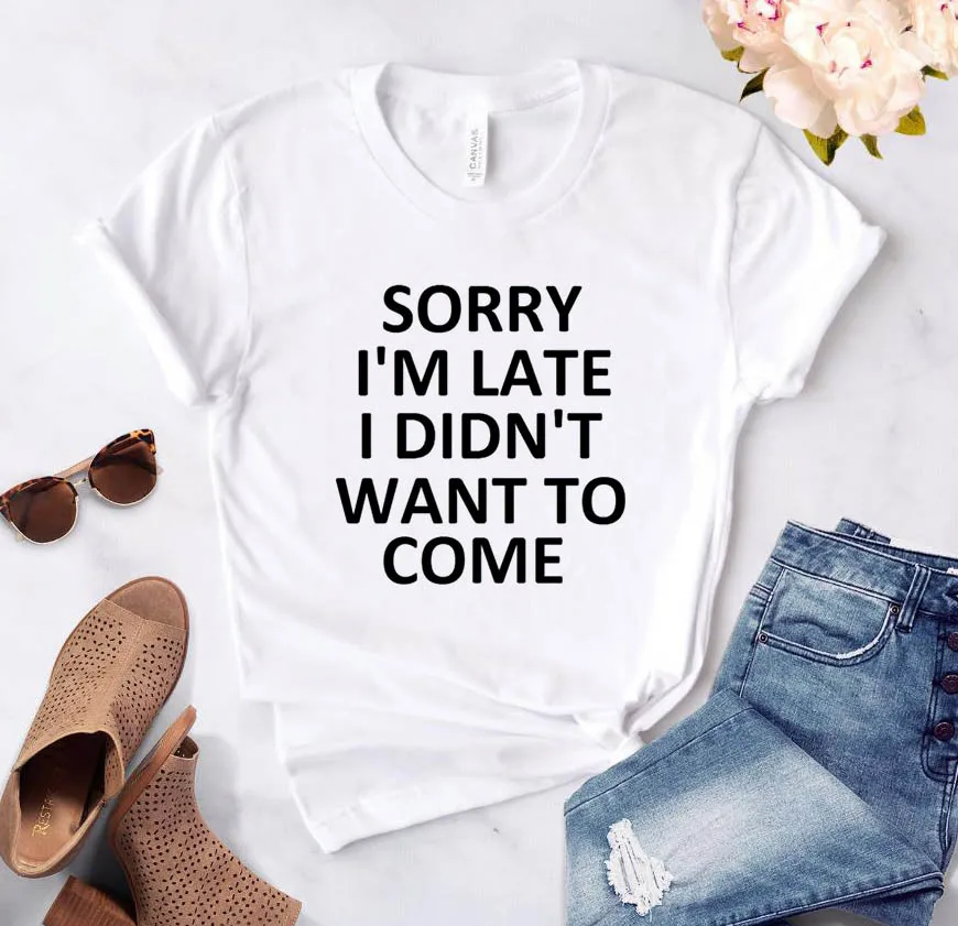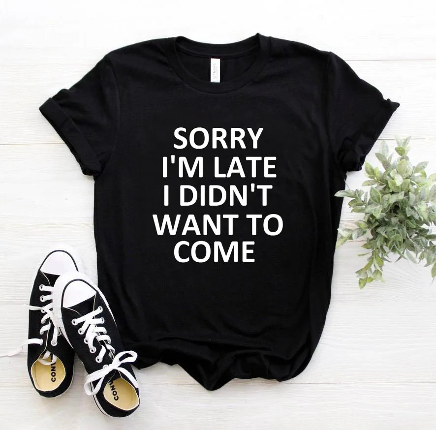 sorry i’m late i didn’t want to come Print Women Tshirt Cotton Casual Funny T Shirt For Lady Top Tee Hipster Drop Ship T-21