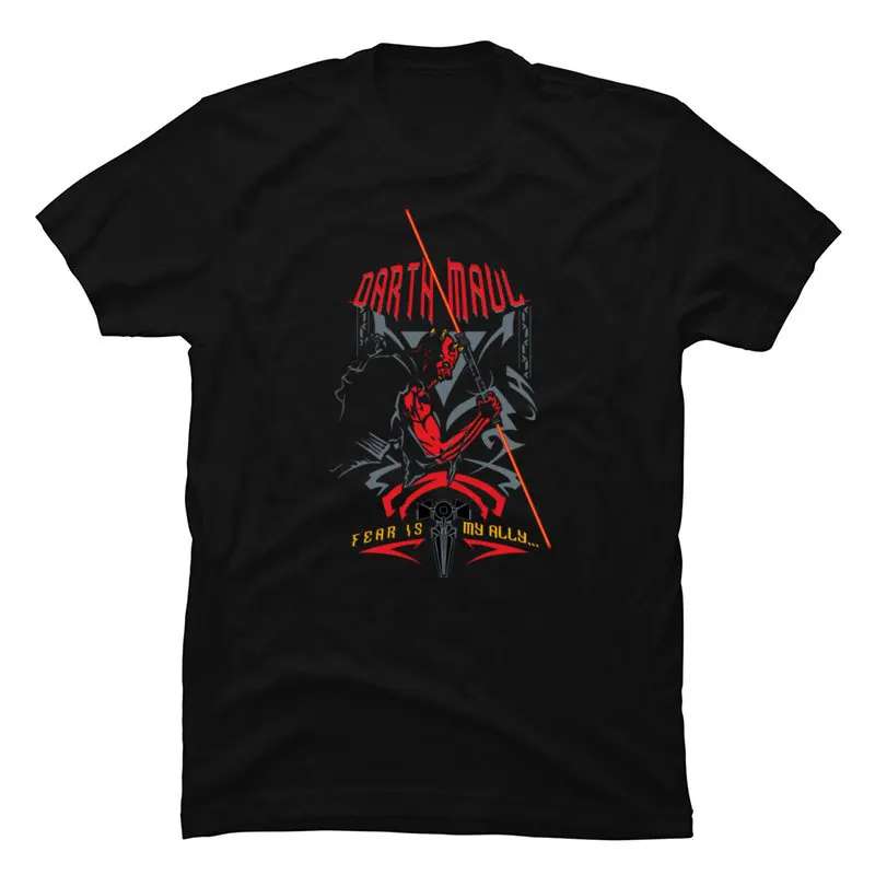 Starwars Darth Maul FEAR IS MY ALLY Demon Tshirts Pure Cotton Brand Man Tshirts Printed Tops Shirts Company Tee-Shirt Men