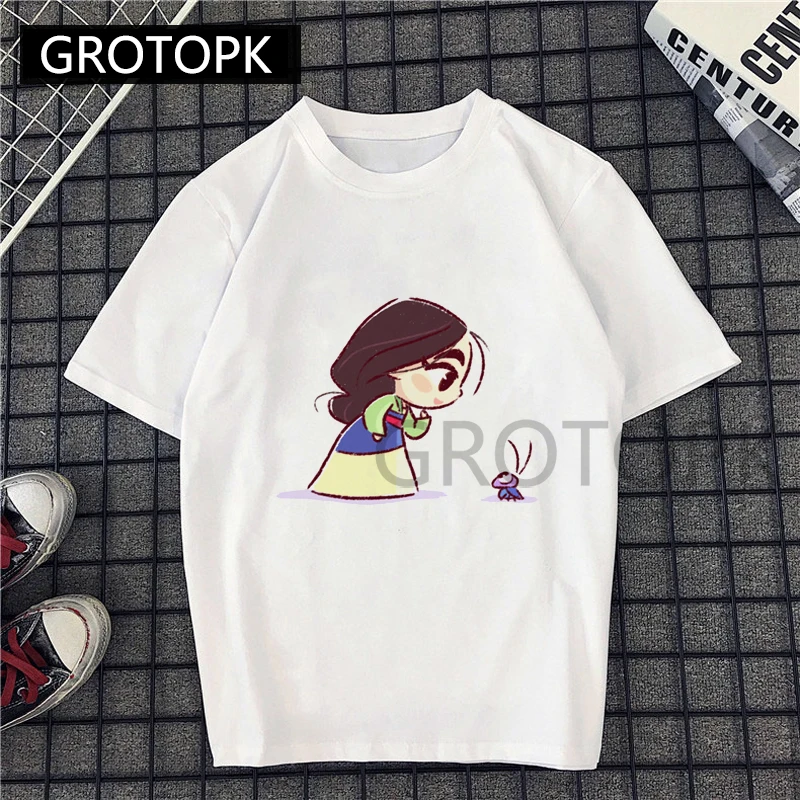 Summer Female Fashion Harajuku Large Size Princess Mulan Print Fun Short-sleeved T-shirt Tops Tees New Cartoon O-Neck T-shirt