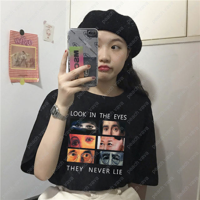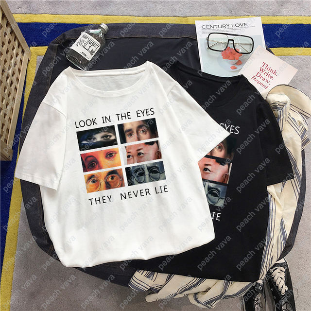 Summer Short Sleeve Eyes Never Lie Funny Retro print T-shirt Unisex Hipster Saying Tees Oversize Tumblr Vintage Women Basic Tops