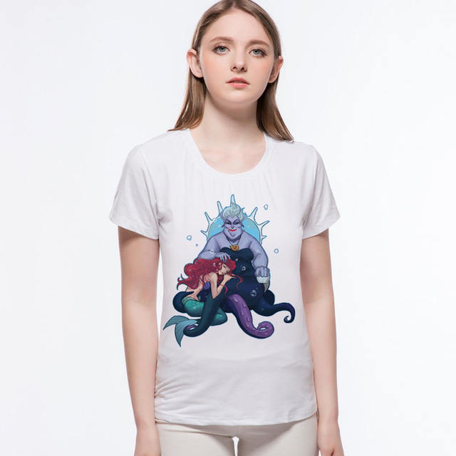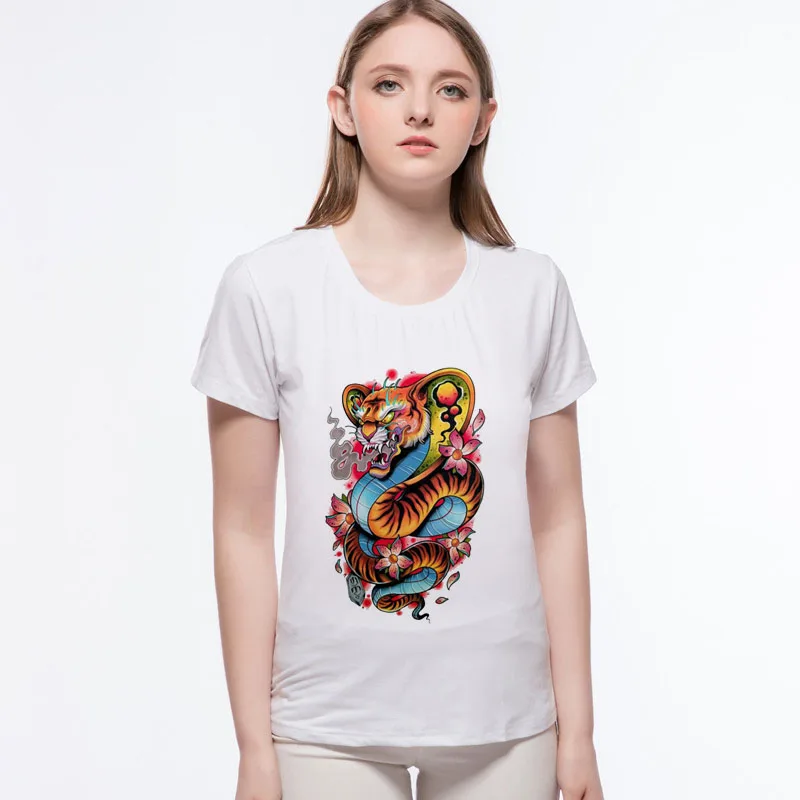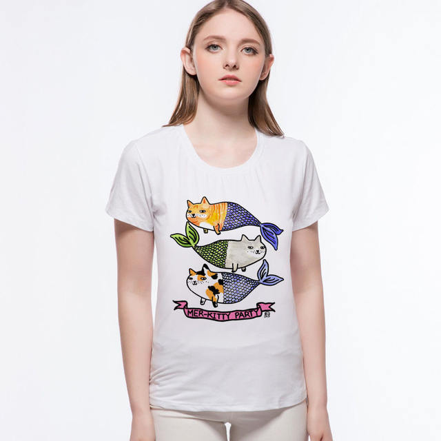 Summer Style Angry Tiger mermaid t shirt Kawaii cat fish Unicorn printed cropped t shirts for womens Female Tops L1-9#
