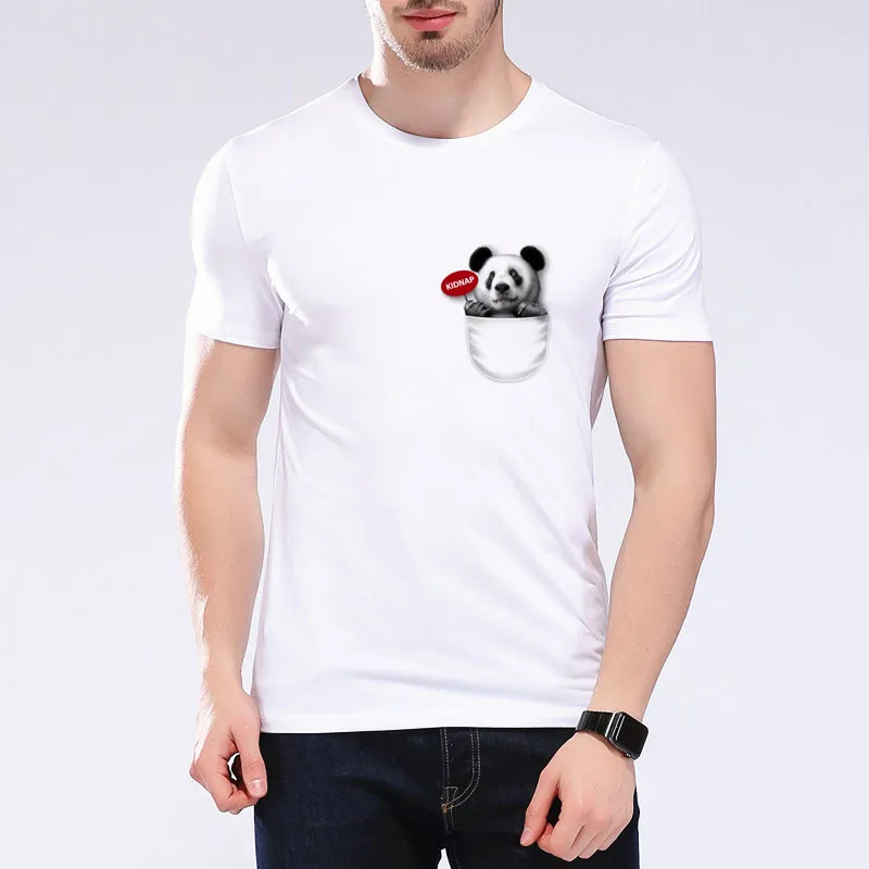 Summer Style Fashion Panda Pocket Men T Shirts Kawaii Casual Funny Animals Short Sleeve White T-Shirt Top Brand Clothing E5-43#
