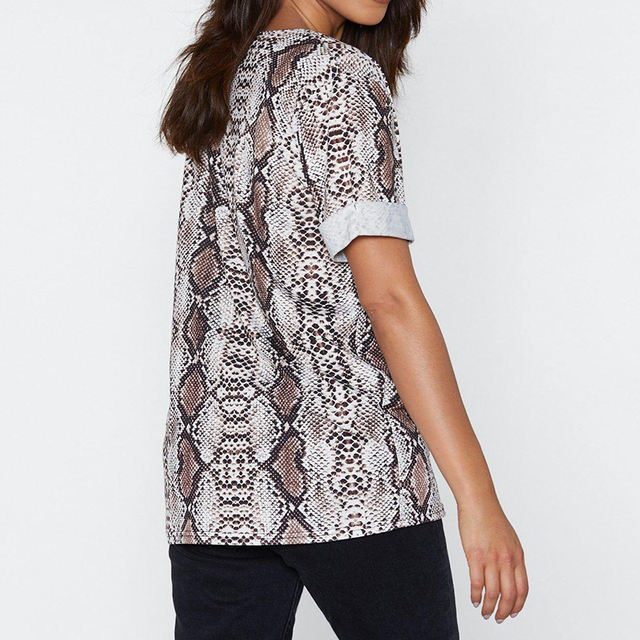 Summer Tshirt for Women 2019 Sexy V-Neck Snake Print T-shirt Femme Casual Loose Top Short Sleeve Ladies Shirt Streetwear Tshirt