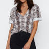 Summer Tshirt Women V-Neck Snake Print T-shirt Femme Casual Loose Top Short Sleeve Ladies Shirt Streetwear Leisure Tshirt