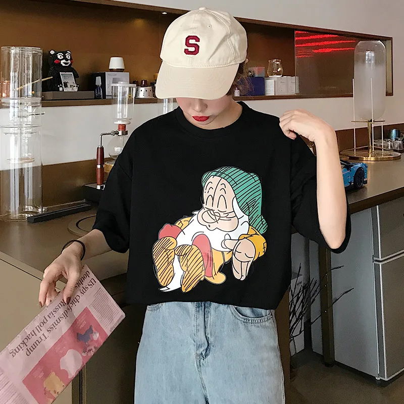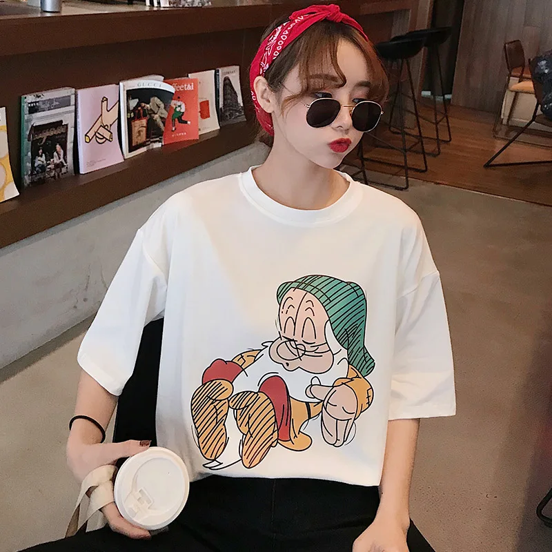 summer Women cartoon print T Shirt Casual Boyfriend tshirt Harajuku Oversized Graphic Funny Female T-Shirts streetwear white Top