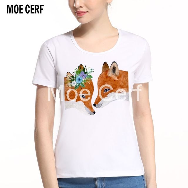 Super Kawaii Cartoon Fox T-shirts Women Fashion Animal Printed Clothing New Arrival Summer Casual Ladys Tops Outfits L6-H-1