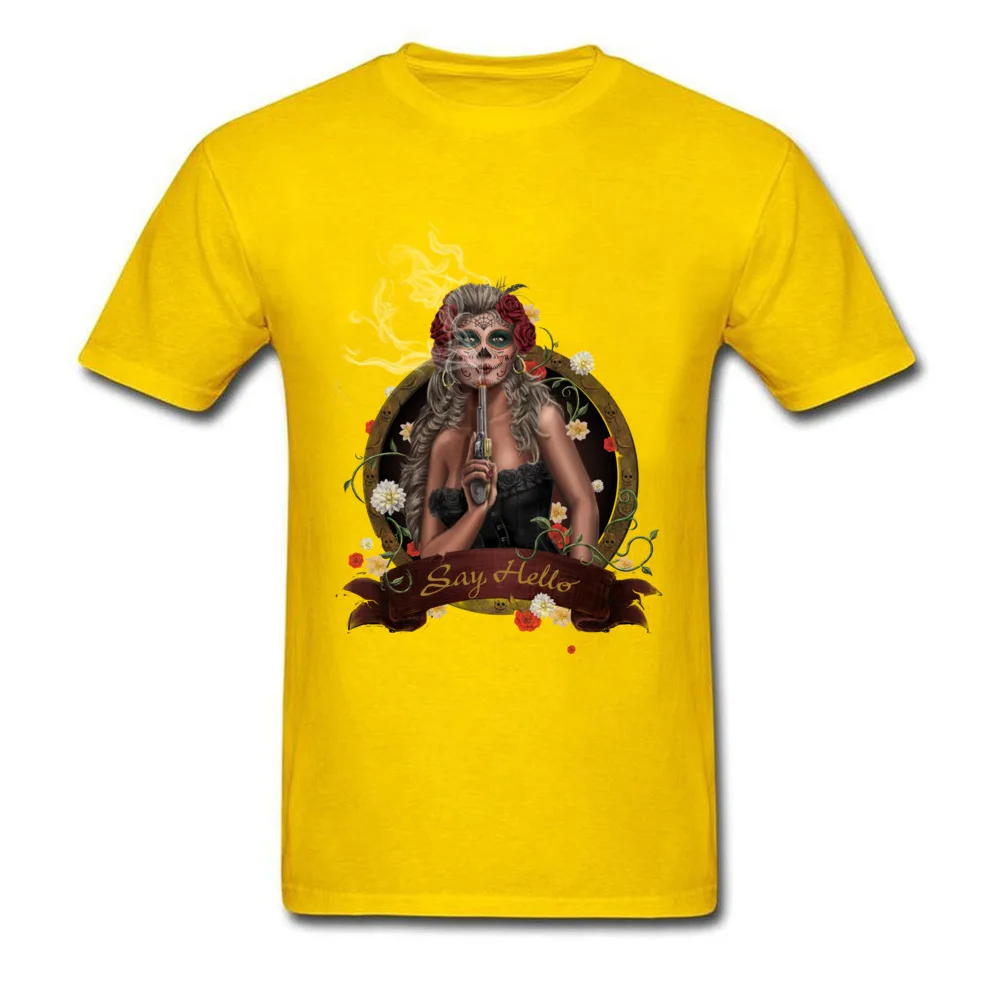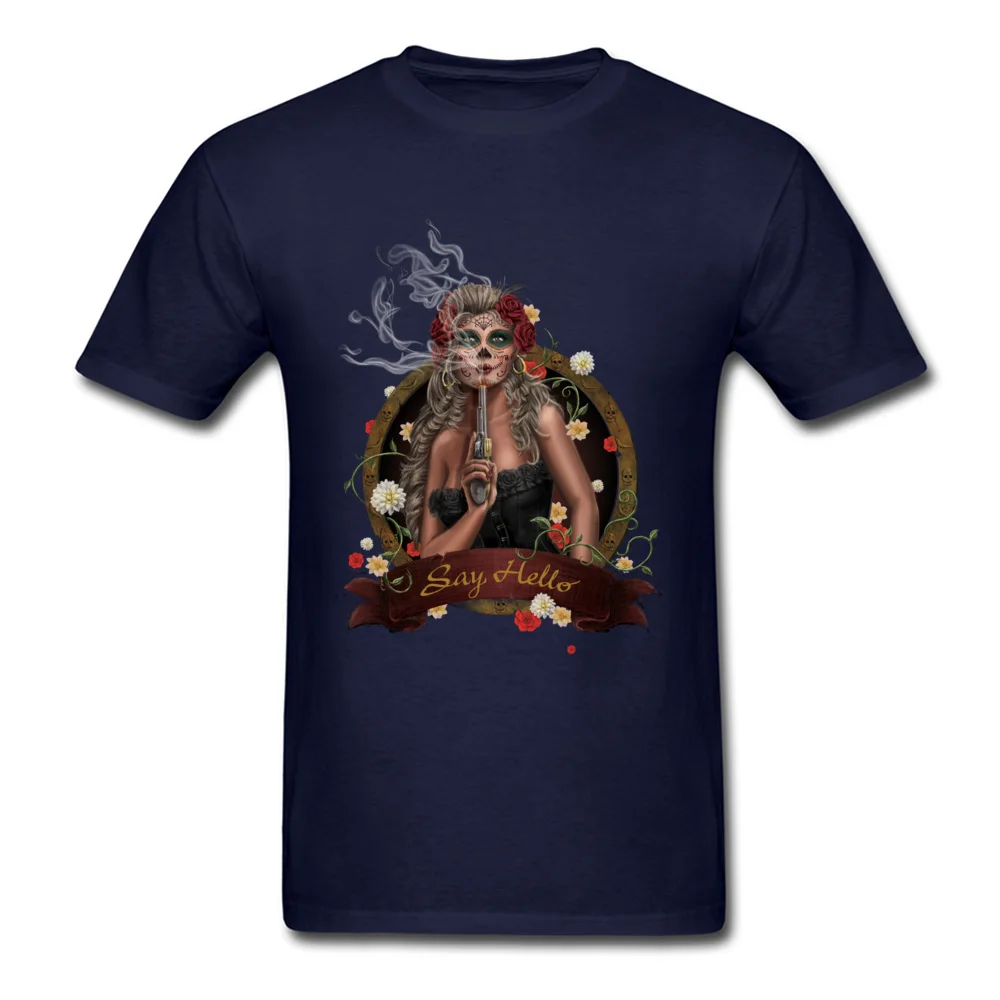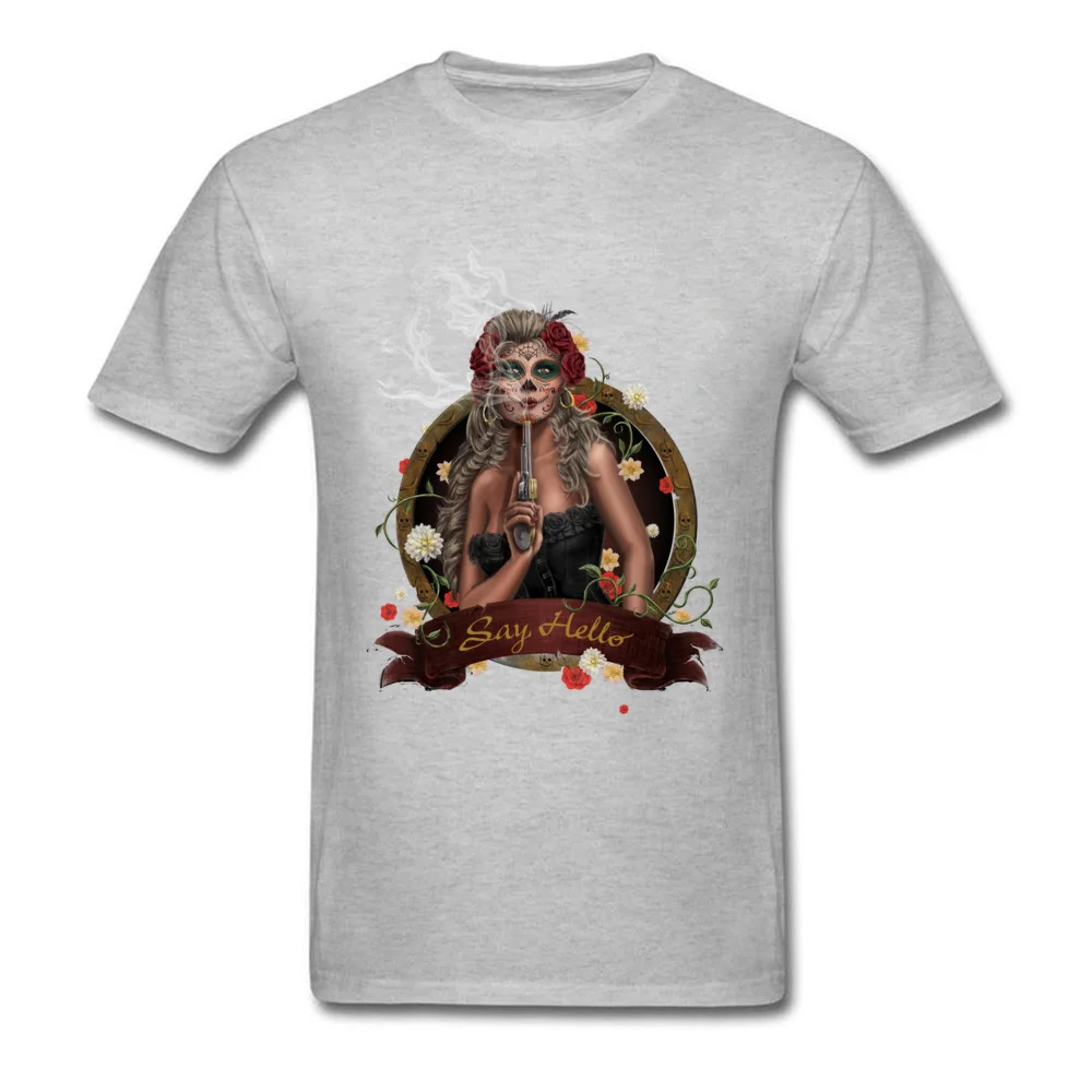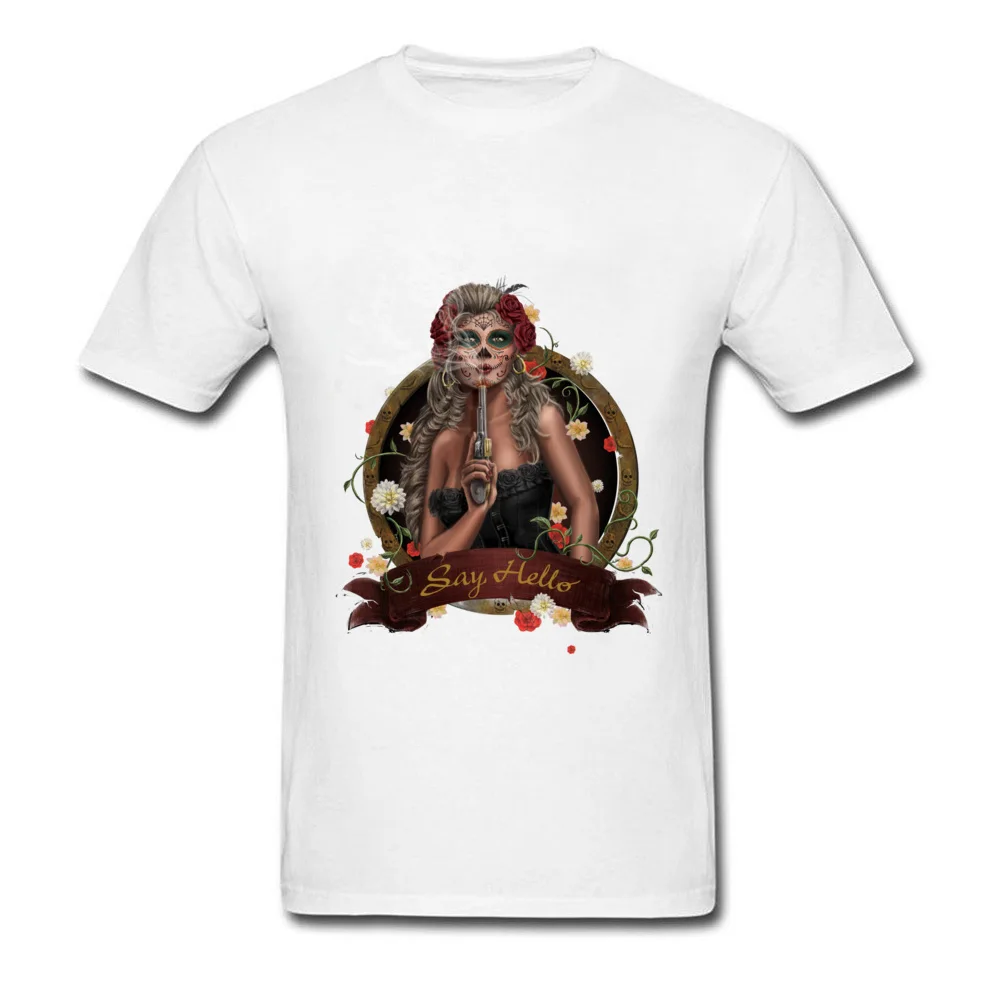 Product Name: Sxy Girl Pin-Up Say Hello Customized T Shirt For Men 100% Cotton Summer Tops T Shirt Unique T Shirt Sexy Killer Designer O-Neck