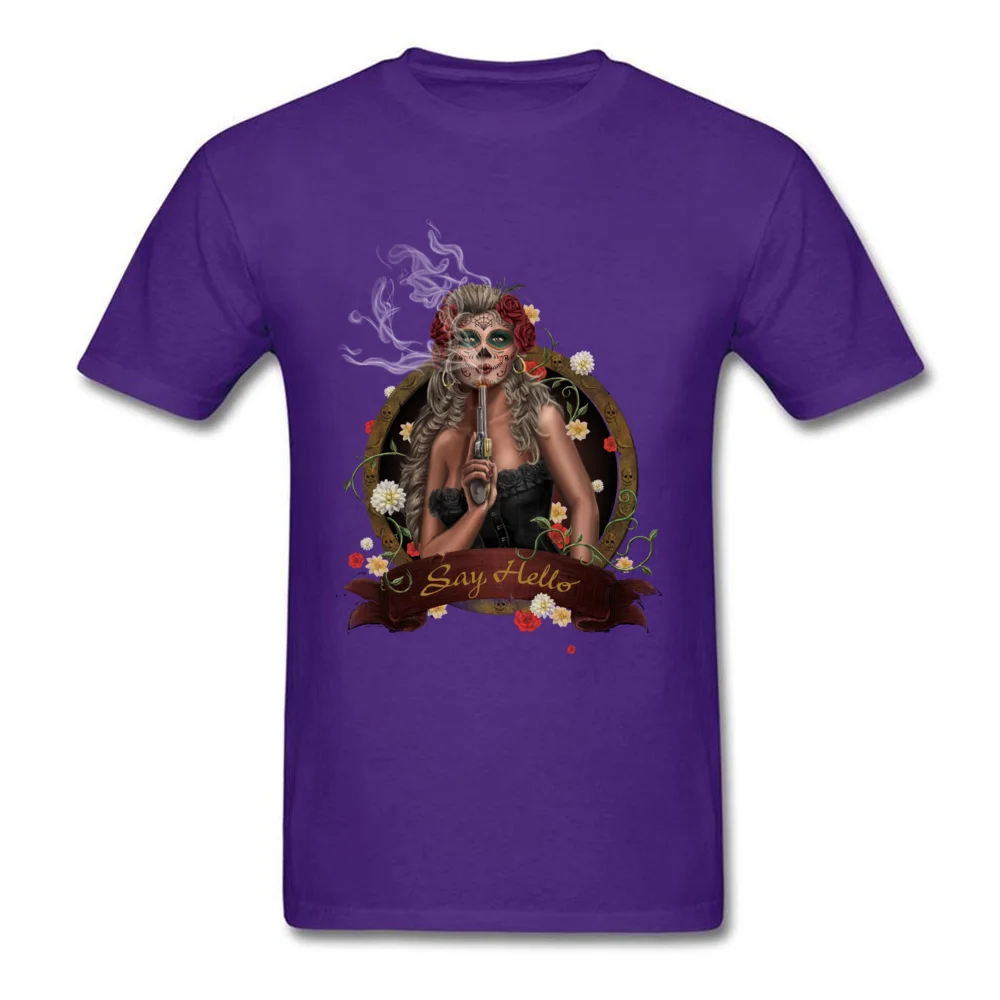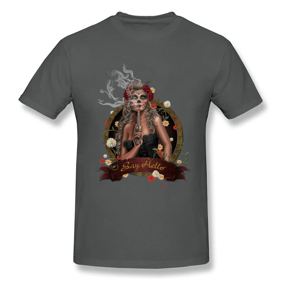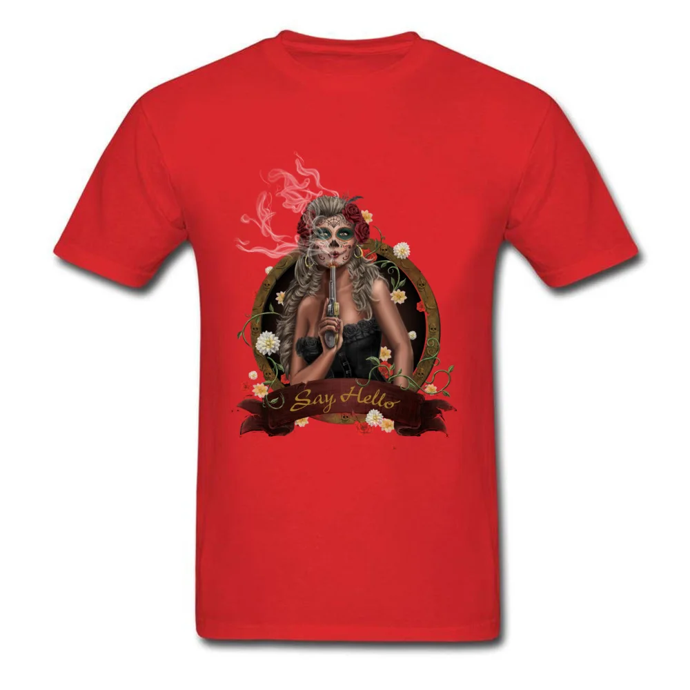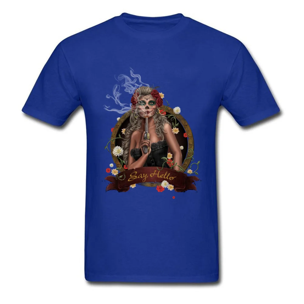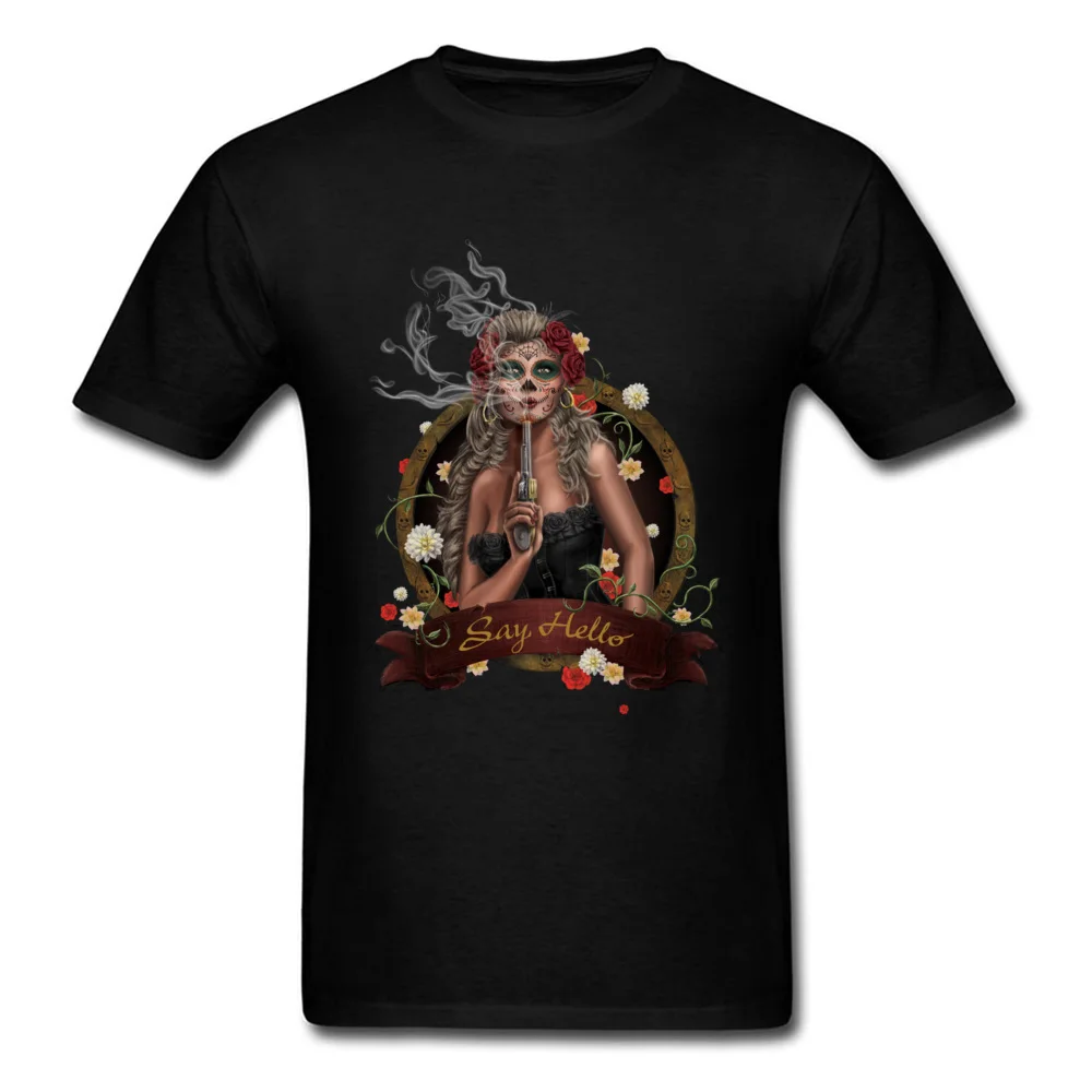 Product Name: Sxy Girl Pin-Up Say Hello Customized T Shirt For Men 100% Cotton Summer Tops T Shirt Unique T Shirt Sexy Killer Designer O-Neck