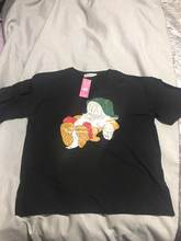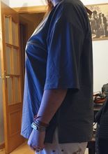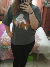 A month to the Urals! Oversize is good, M and L are slightly different from each other, on the sides there are small cuts, on the height of 164 half the thigh, sleeves to the leg, synthetics but not creaky! Rubber was a gift in one of the T-shirts, ordered 2. and pay attention to the print of a white T-shirt (the last photo) for me is a marriage, for it I returned money, and so the T-shirts are not bad, you can take