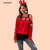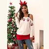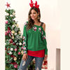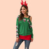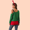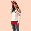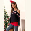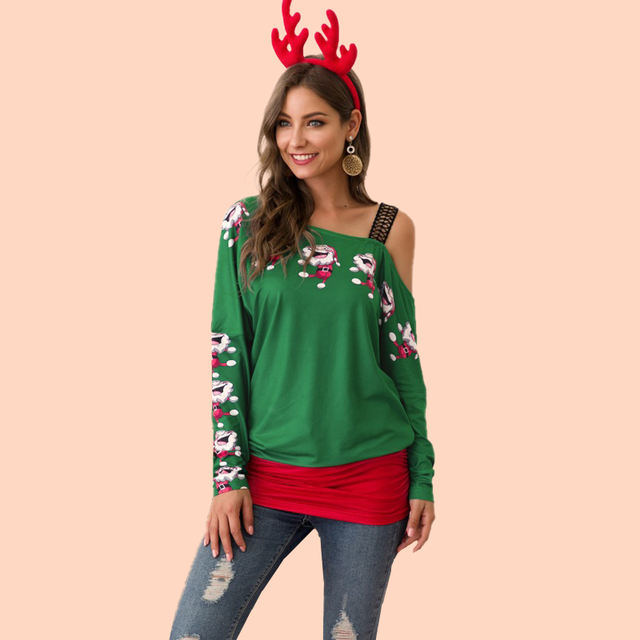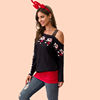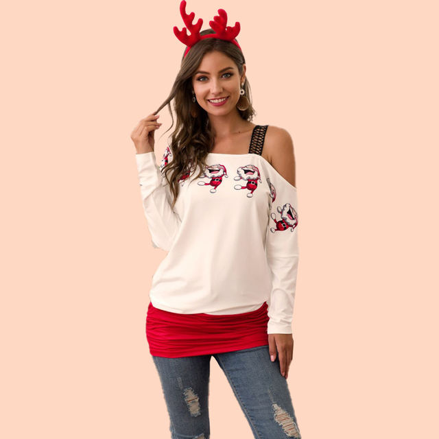 T Shirt Women Autumn Winter Long Sleeve Santa Print Stitching Vogue One Shoulder Tee Tops Feminina Casual Christmas Clothes 2019