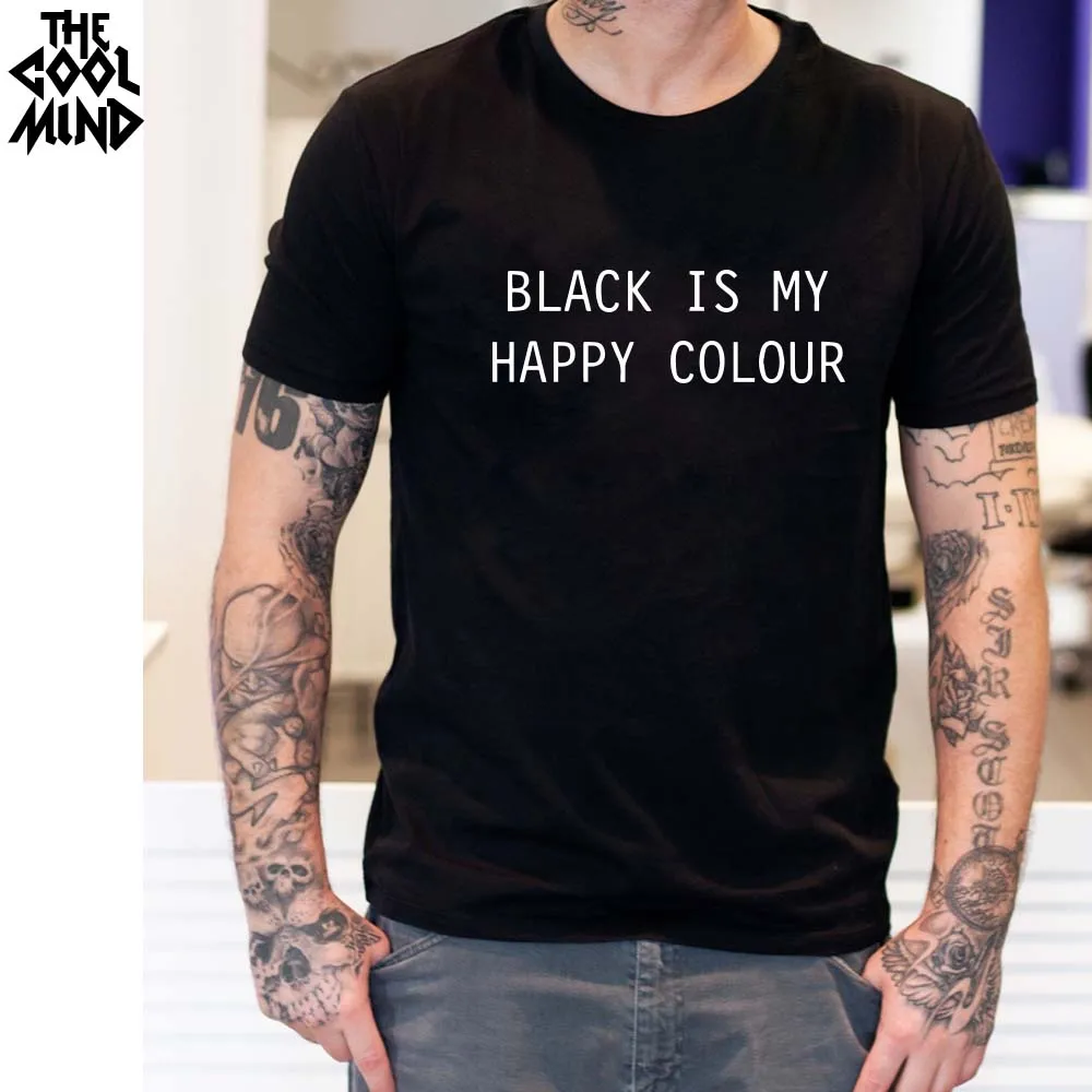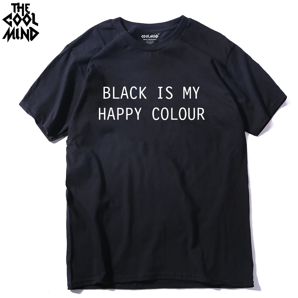 THE COOLMIND Black Is My Happy Colour Letter printed MEN Black O Neck Cotton T Shirts Printing Fashion t-shirt for MEN Tee top