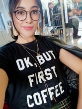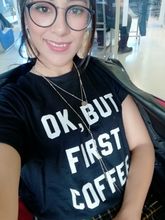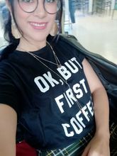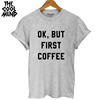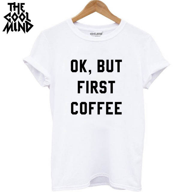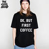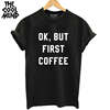THE COOLMIND Casual O-Neck Knitted woman T-Shirt Quality Loose Cotton Short Sleeve ok but first coffee Printed Women T Shirt